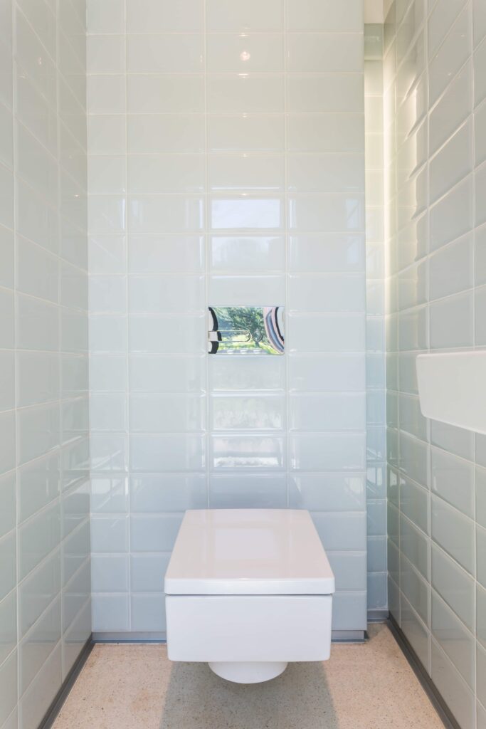 Elegant tegelzetten en naadloze aftimmering Voor een strakke, moderne toilet afwerking